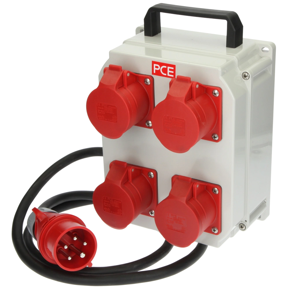 Mobiler Kompaktverteiler mit Tragegriff in robuster Ausführung als ideale Lösung für Baustellen oder Werkstätten. Durch seine kompakte Bauform ist er platzsparend und leicht verstaubar.