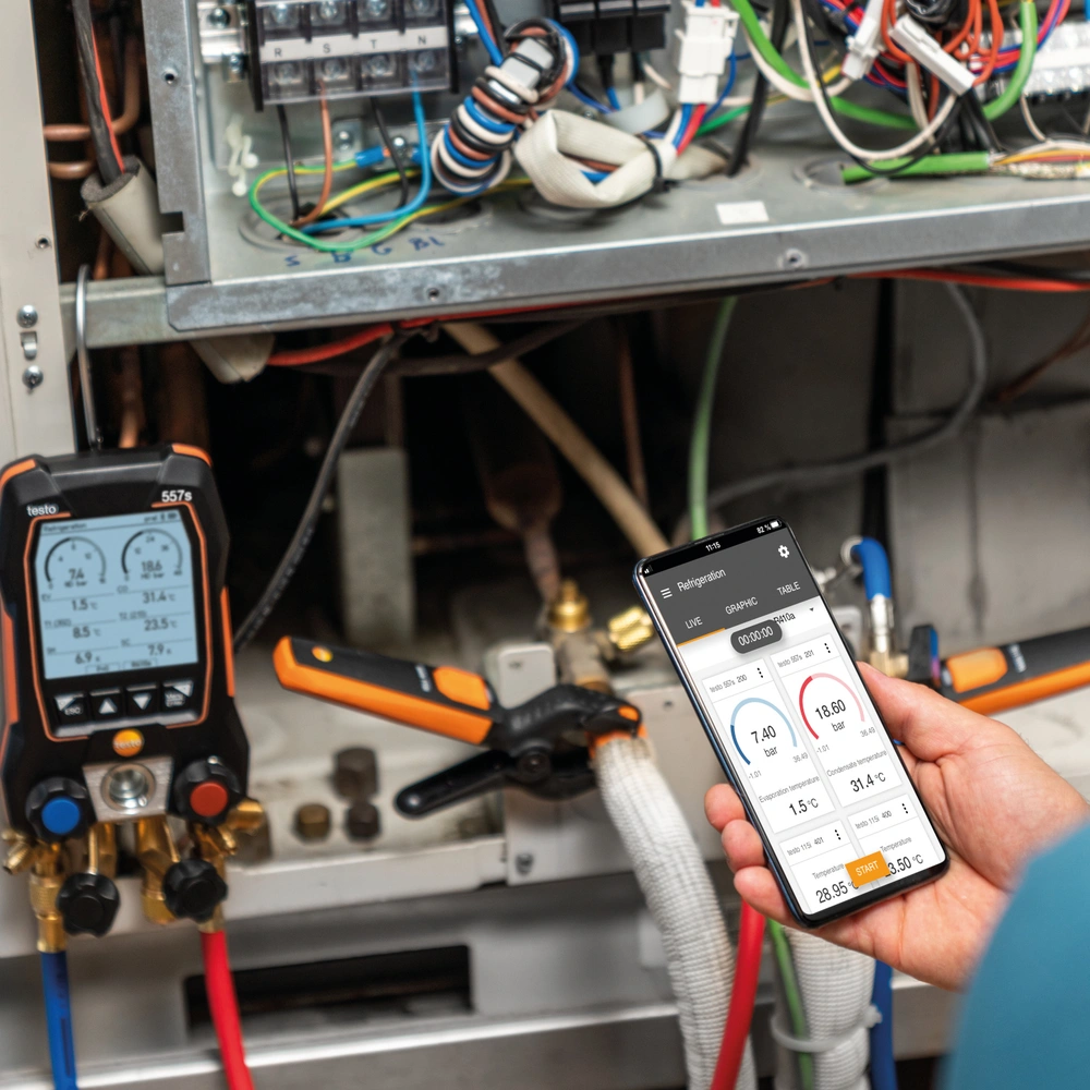 Praktisches Smart-Vakuum-Set für kabellose Messungen an Kälte-, Klima- und Wärmepumpenanlagen: Das testo 558s Smart Vakuum Set ist eine digitale Monteurhilfe für den täglichen Einsatz bei Service, Wartung und Inbetriebnahme...