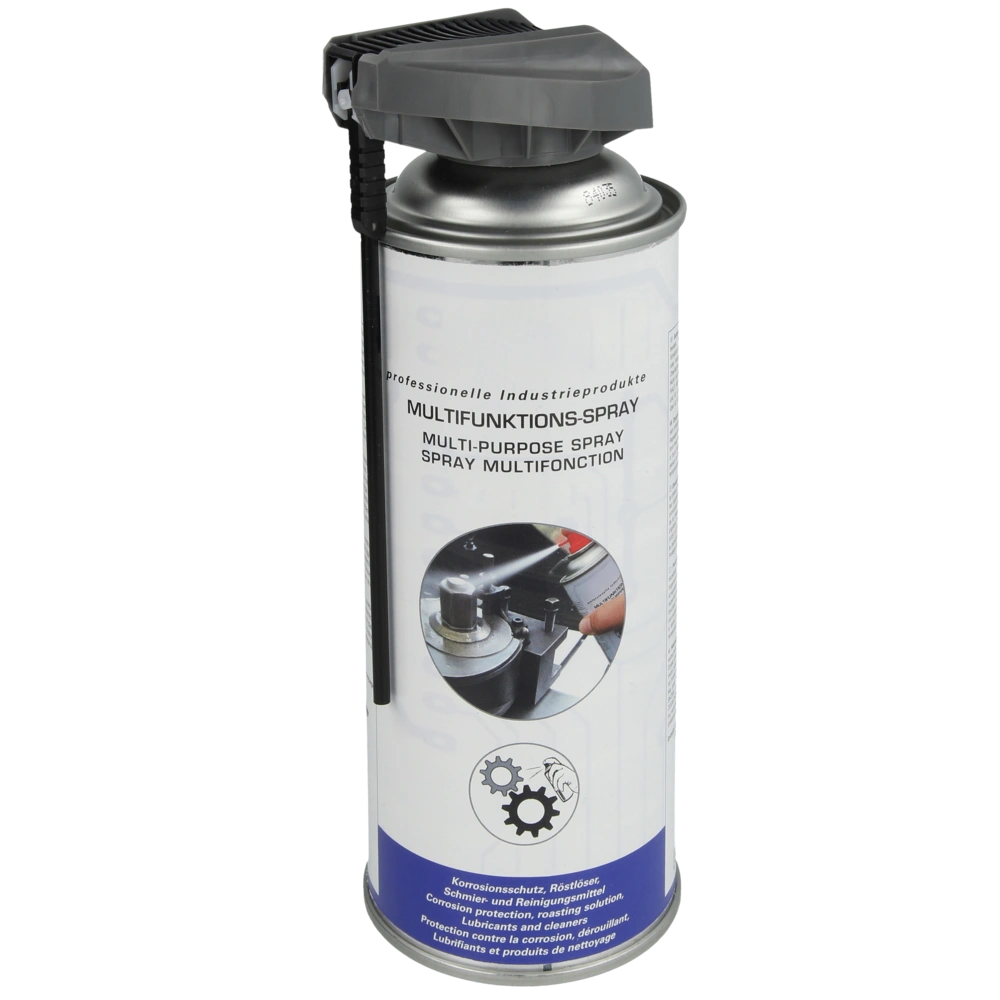 Das Wartungsspray ist Korrosionsschutz, Rostlöser, Schmier- und Reingigungsmittel in einem. Es verdrängt Feuchtigkeit, unterwandert Fett und Schmutz und bildet dabei eine korrisionsbeständige Schutzschicht...