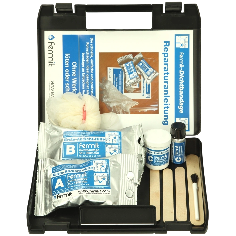 Das Set ist für viele Rohrmaterialien geeignet und kann neben Wasserleitungen auch bei Ölleitungen eingesetzt werden. Innerhalb von 30 Minuten sind Haarrisse oder leckende Rohrübergänge mit den Bandagen abgedichtet.
