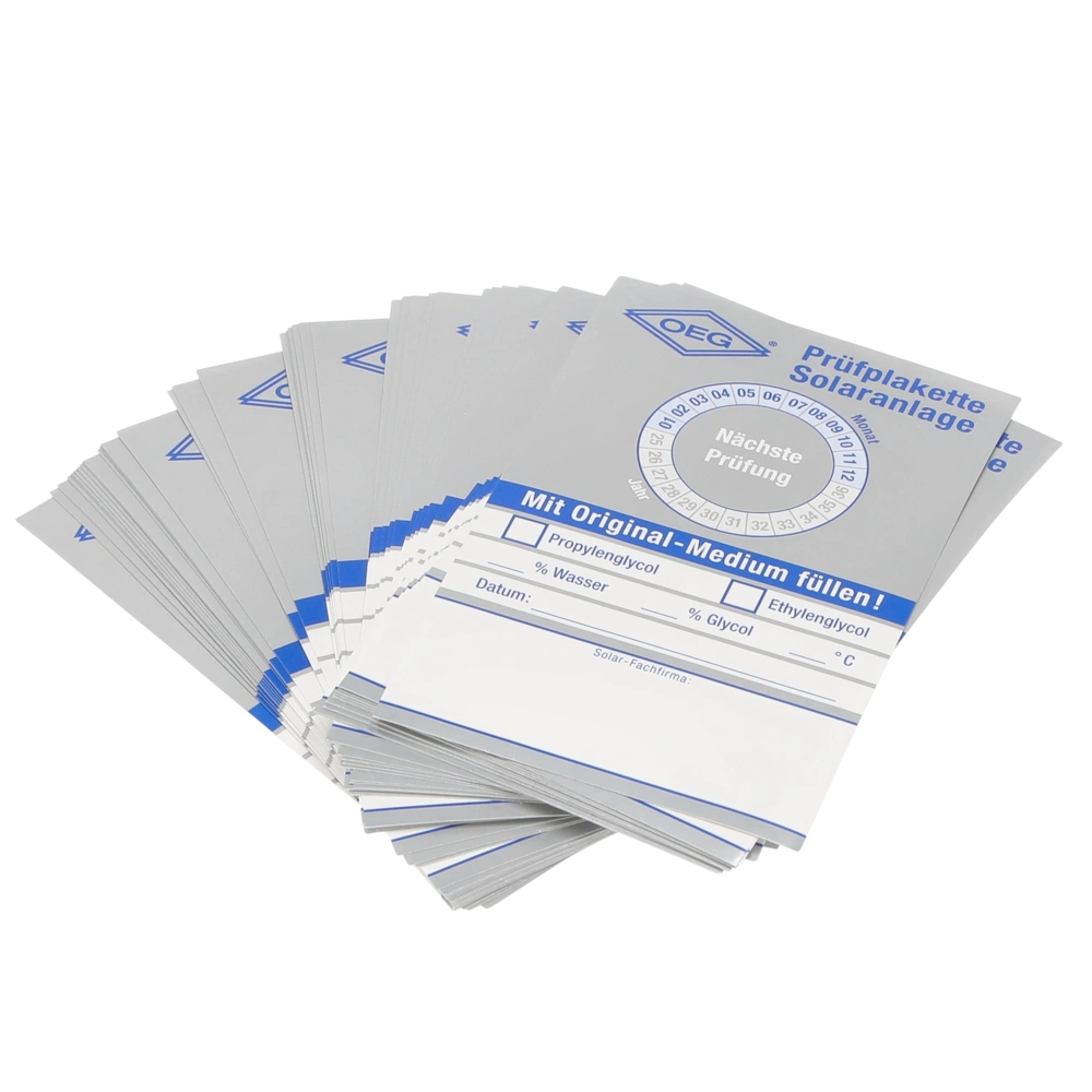 Kleben sie ein Zeichen, einfach gut und sichtbar an die geprüfte Solaranlage. So wird der Kunde immer an den nächsten Wartungstermin erinnert.