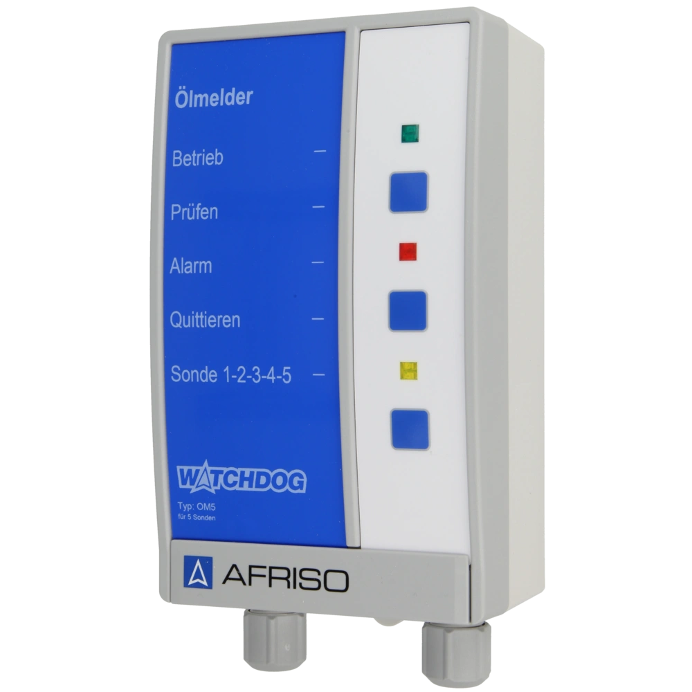 Alle ProduktinformationenÖl- und Wassermelder zum Anschluss von bis zu 5 optoelektronischen Sonden. Mit dem Warngerät können Heizöl, Diesel, Motorenöle, Getriebeöle, Hydrauliköl und Pflanzenöl detektiert werden. Auch als Warnmelder für Wasser ist das Gerät einsetzbar. Die Sonden sind selbstüberwachend. Das Aufputz-Anzeigegerät mit optischem- und akustischem Alarm, Prüf- und Quittiertaste verfügt über einen zusätzlichen Relaisausgang.