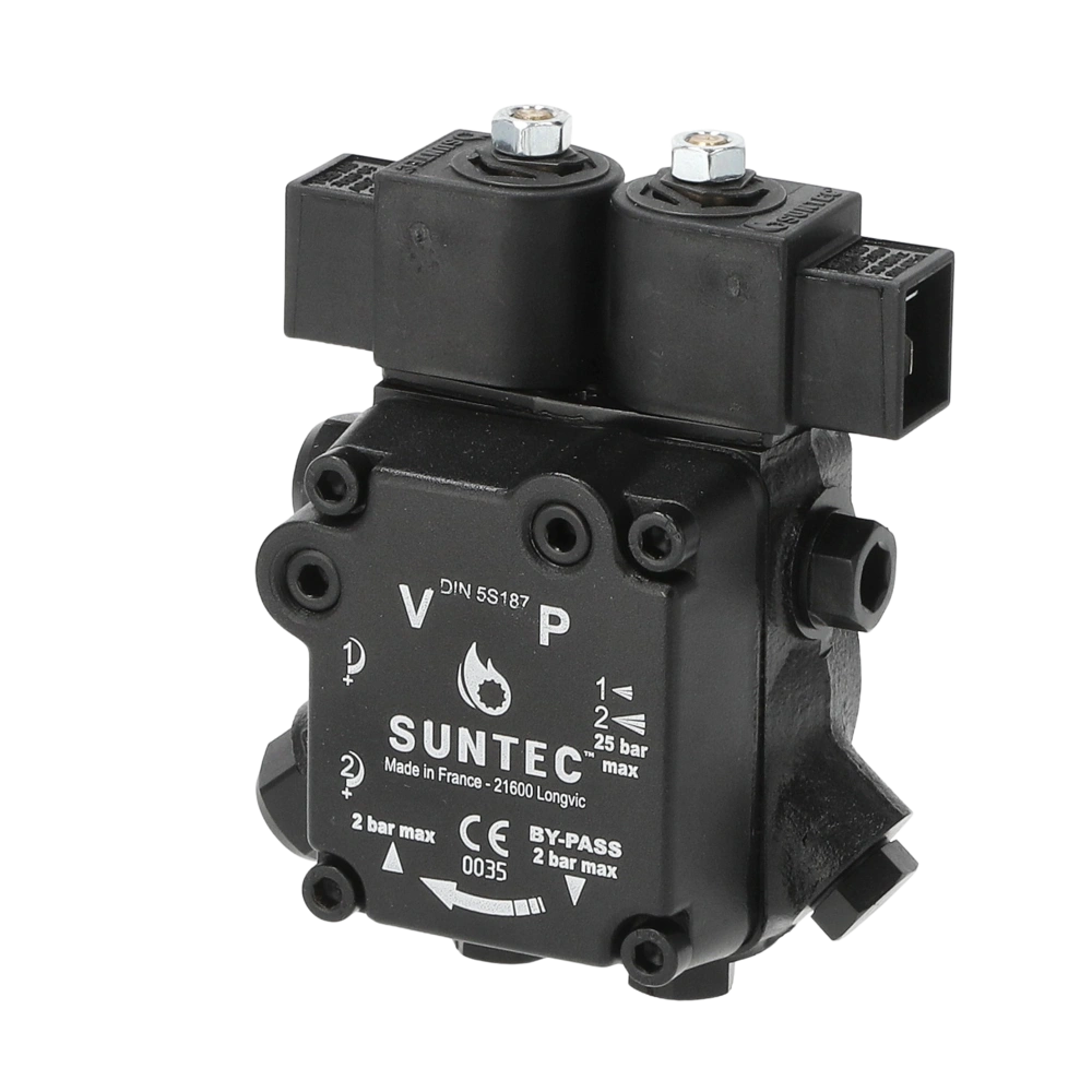 Innenzahnradpumpe mit integriertem Sicherheitsabsperrventil für zweistufigen Brennerbetrieb mit leichtem oder extraleichtem Heizöl. Die Umschaltung zwischen den beiden Stufen erfolgt durch ein zweites integriertes Magnetventil. Die Pumpe kann im Ein- oder Zweistrang System eingesetzt werden.