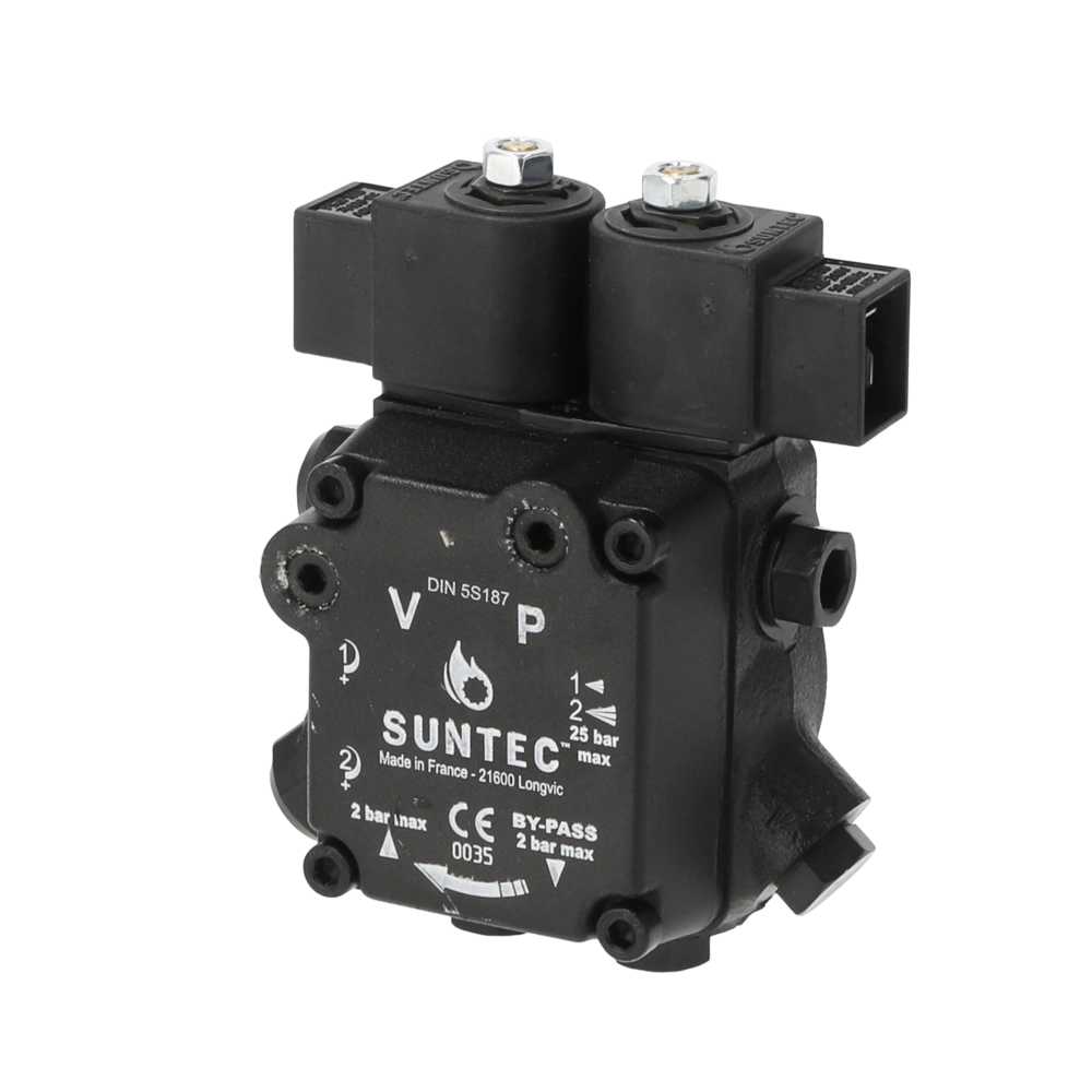 Innenzahnradpumpe mit integriertem Sicherheitsabsperrventil für zweistufigen Brennerbetrieb mit leichtem oder extraleichtem Heizöl. Die Umschaltung zwischen den beiden Stufen erfolgt durch ein zweites integriertes Magnetventil. Die Pumpe kann im Ein- oder Zweistrang System eingesetzt werden.