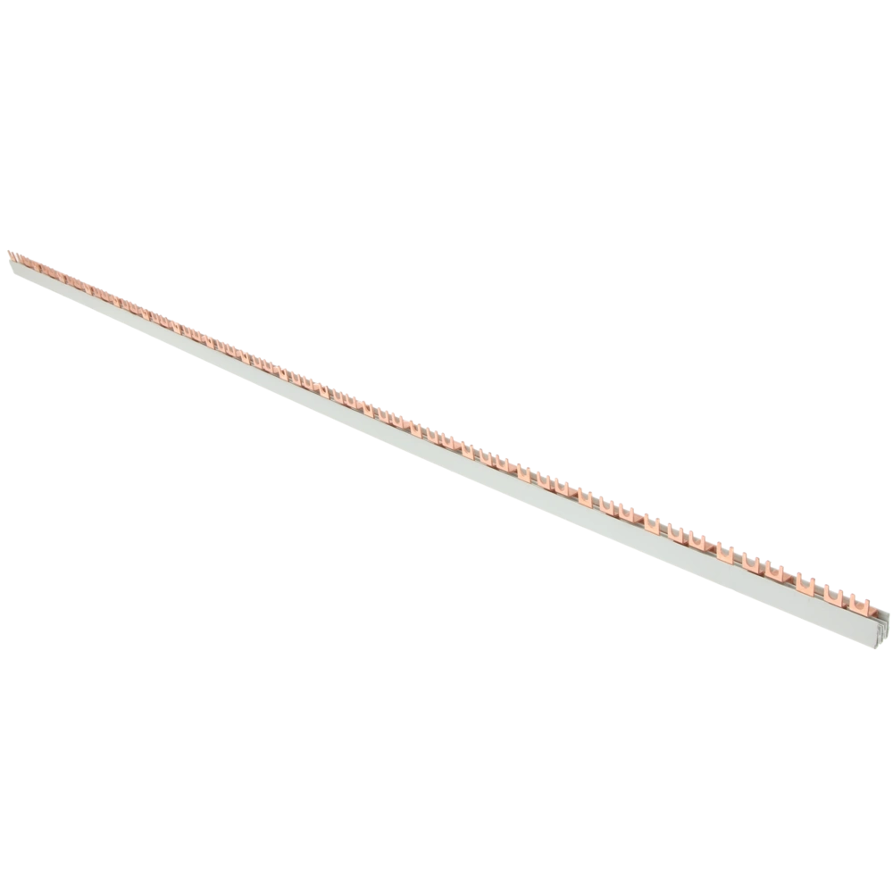 Phasenschiene mit Dreileitersystem zur einfachen und schnellen Einspeisung von Sicherungsautomaten. Die Länge kann beliebig gekürzt werden. Für den Berührungsschutz werden die Schienenenden etwas herausgeschoben und abgelängt. Zusätzlich steht für die Schienenenden durch 703000294eine Endkappe zur Verfügung.