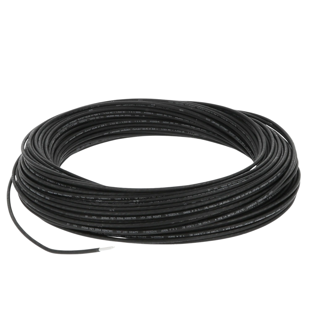 Robuste PV-Leitung zur Außen- und Innenverkabelung von Solarmodulen und zur Verbindung der Modulreihen mit dem Wechselrichter. Die Leitung ist auch unter Putz und bis 1 Meter Wassertiefe verlegbar.