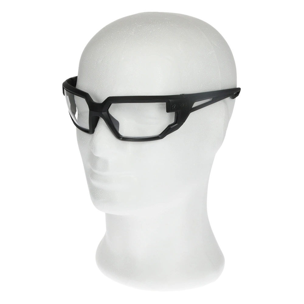 Ballistische Brille zum sicheren Schutz der Augen nach MIL-SPEC-Norm. Die kratzfesten Hartschalengläser aus Polycarbonat mit einer effizienten Antibeschlag-Beschichtung sorgen jederzeit für klare Sicht. Das stoßfeste und stabile Gestell im Wraparound-Design ermöglicht einen rutschfesten Sitz und eine ungehinderte Sichttiefe. Dabei sorgen die belüfteten, weichen Bügel und die bequemen Nasenpolster für einen angenehmen Tragekomfort. Außerdem bietet die robuste, komfortable Schutzbrille einen UV-Schutz von 99 %.