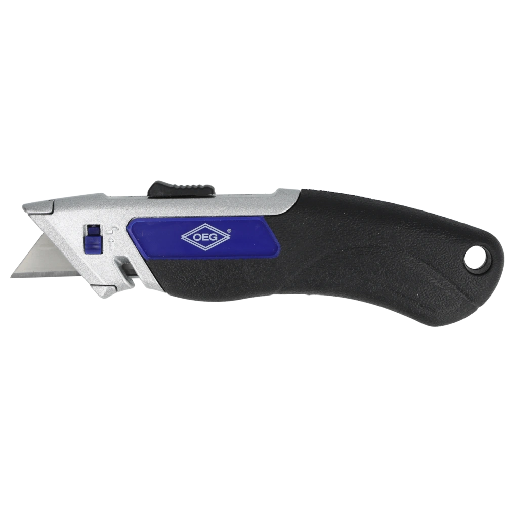 Die Klinge dieses Profi-Cutters fährt automatisch nicht nur nach Loslassen des Klingenschiebers in das Gehäuse zurück, sondern auch, sobald kein Kontakt mehr zur Schnittoberfläche besteht. Das gewährleistet höchste Arbeitssicherheit...