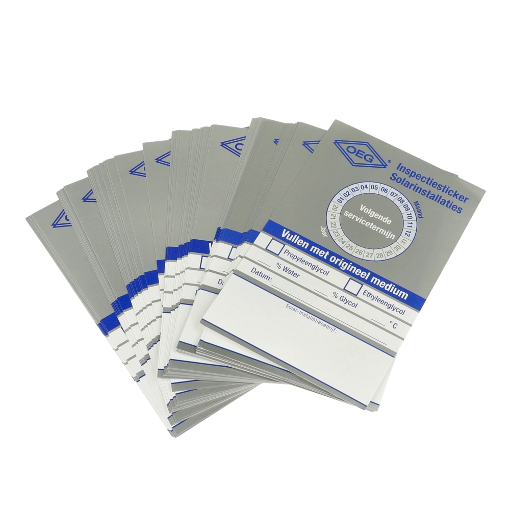 Kleben sie ein Zeichen, einfach gut und sichtbar an die geprüfte Solaranlage. So wird der Kunde immer an den nächsten Wartungstermin erinnert.