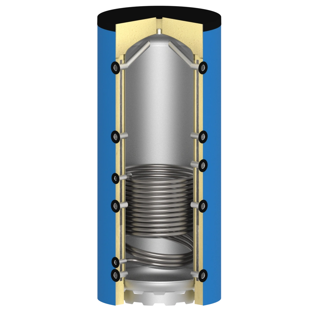 Het spiraal van een buffervat is niet geschikt voor zuurstofrijk tapwater, maar voor een gesloten circuit naar een warmteopwekker.
