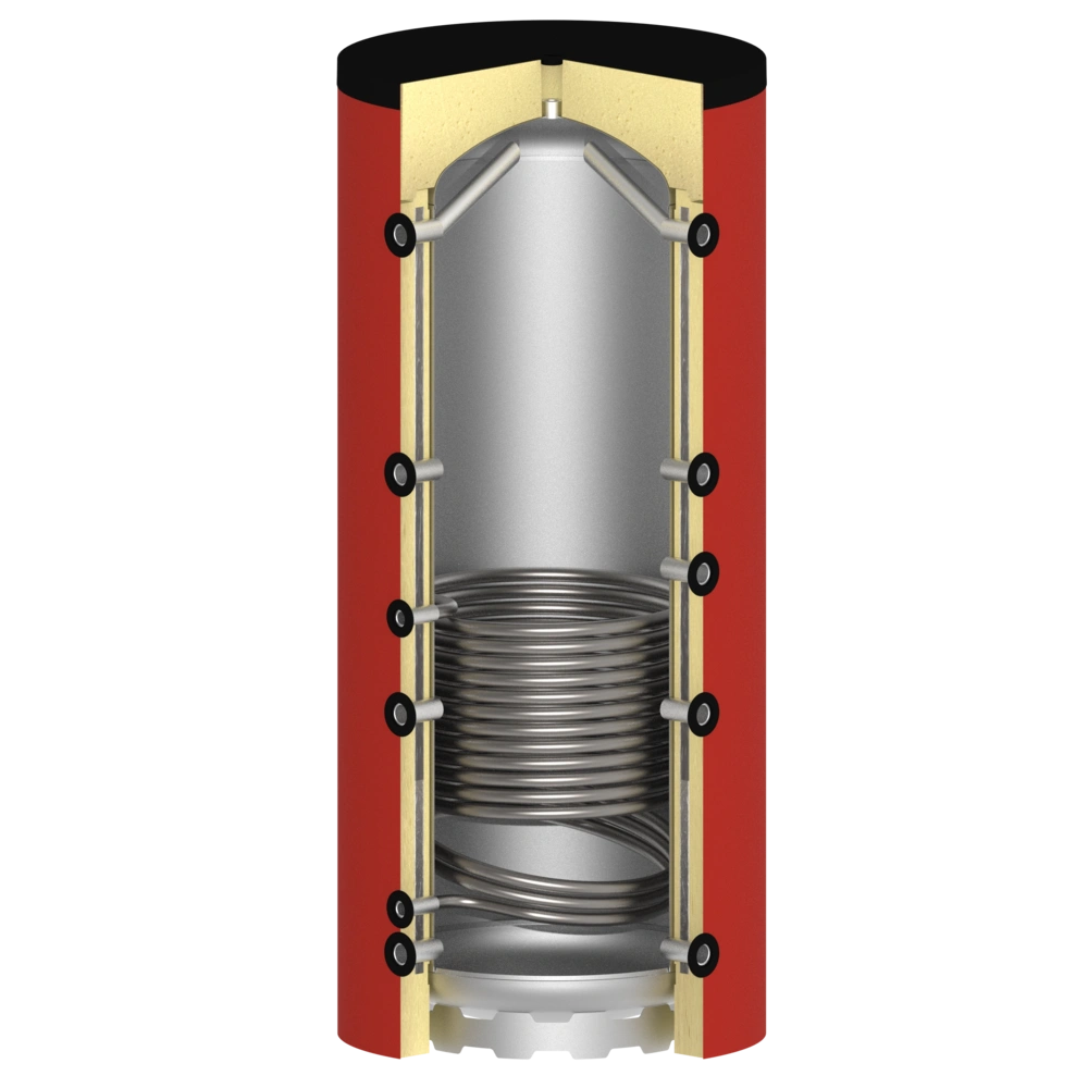 Het spiraal van een buffervat is niet geschikt voor zuurstofrijk tapwater, maar voor een gesloten circuit naar een warmteopwekker.