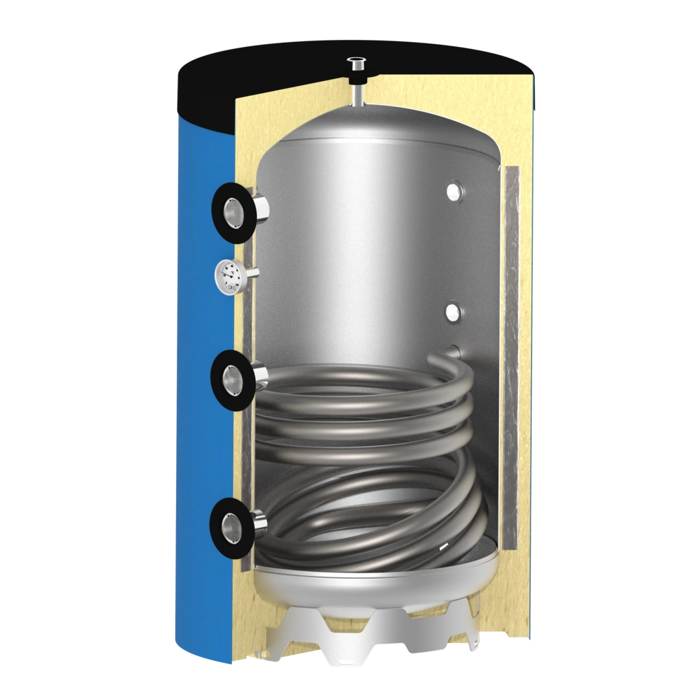 Het spiraal van een buffervat is niet geschikt voor zuurstofrijk tapwater, maar voor een gesloten circuit naar een warmteopwekker.