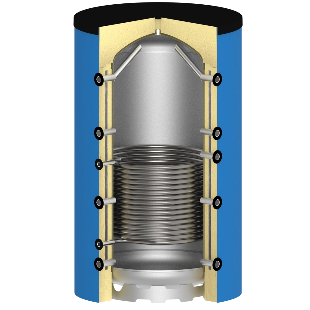 Het spiraal van een buffervat is niet geschikt voor zuurstofrijk tapwater, maar voor een gesloten circuit naar een warmteopwekker.