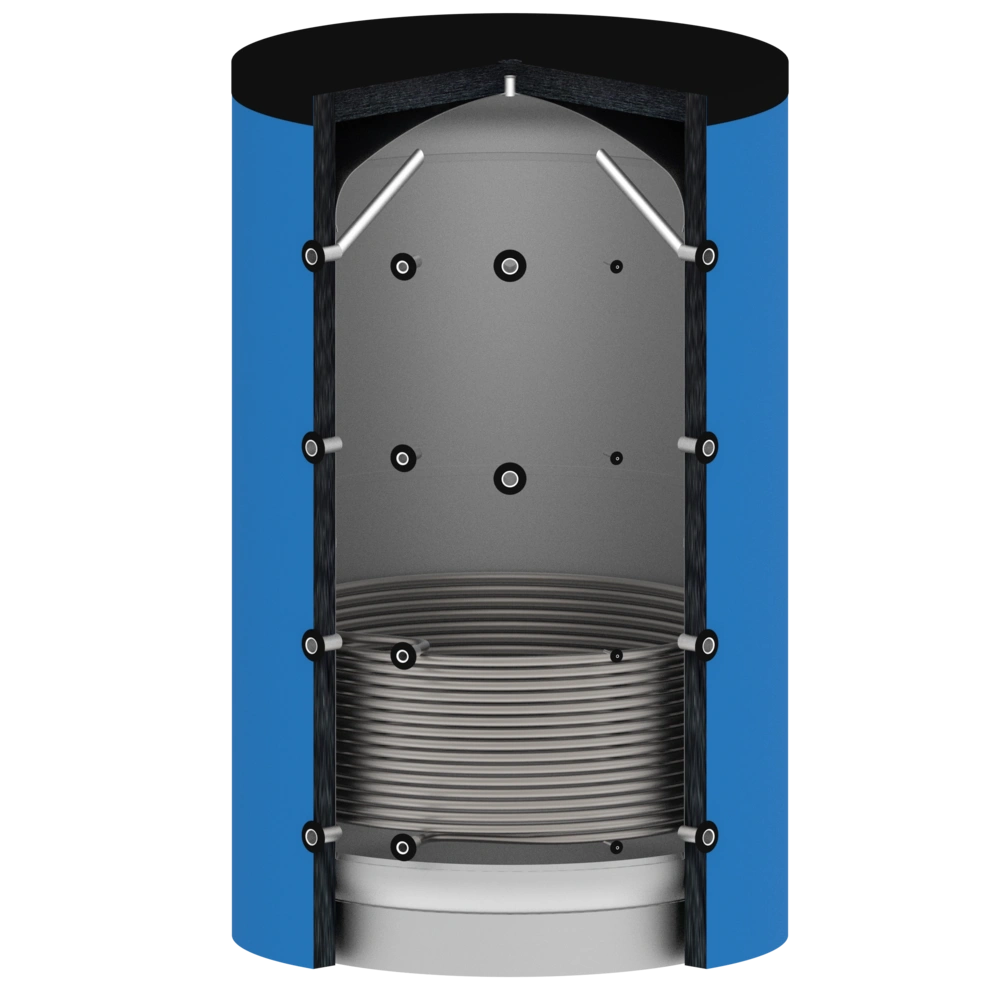 Premium Pufferspeicher für höchste Ansprüche an eine Wärmespeicherung und Effizienz. Besonders dort, wo Wärmeerzeuger eingesetzt werden, bei denen der optimale Wirkungsgrad erst unter Volllast erreicht wird (z.B.: viele Festbrennstoffkessel). Während des Betriebes des Wärmeerzeugers wird mehr Wärme erzeugt , als von den Verbrauchern abgenommen wird. Die überschüssige Wärme erhitzt das Wasser des Pufferspeichers und wird somit gespeichert. Später kann dann in Stillstandsphasen diese Wärme bedarfsgerecht abgerufen werden.