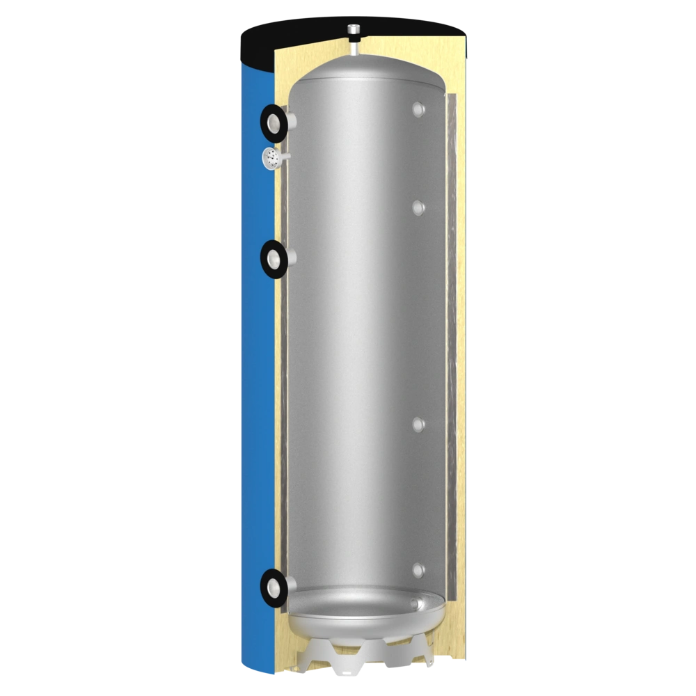 Premium Pufferspeicher, der zum Kühlen und Wärmen eingesetzt werden kann. Um die Oberfläche bei Kühlfunktion vor Kondensat zu schützen, ist der Speicher mit einer speziellen, hochwertigen Anti-Korrosions-Beschichtung ausgestattet...