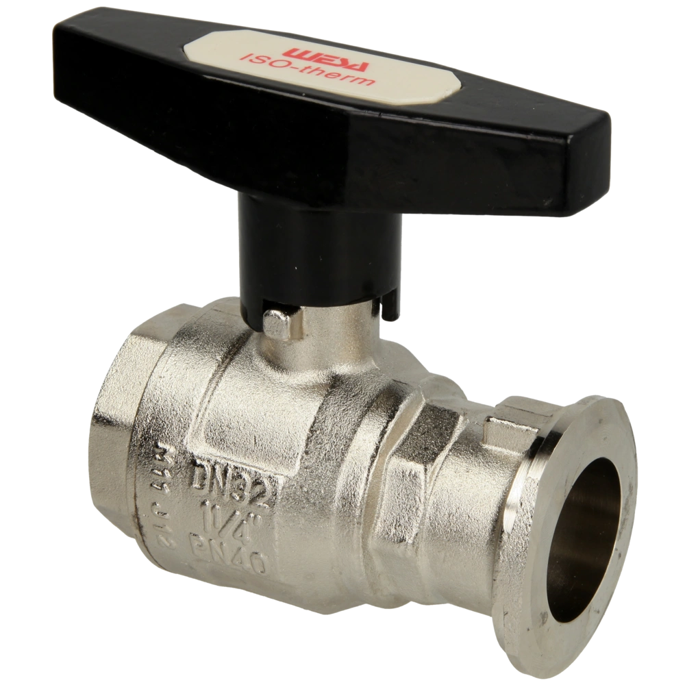 Der Pumpenkugelhahn mit vollem Durchgang ist vollständig isolierbar. Der Griff besteht aus Aluminium. Er ist mit einer Stopfbuchse ausgestattet.