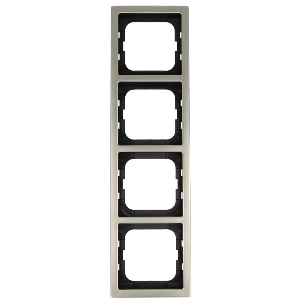 4-fach Abdeckrahmen zur senkrechten und waagerechten Montage. Der Rahmen kann für Kanalinstallationen mit 80 mm Kanalabdeckung verwendet werden.