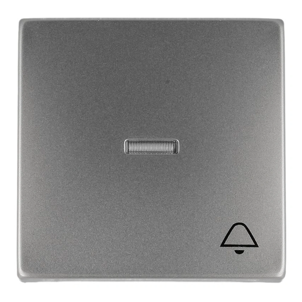 Einzelwippe mit transparenter Kalotte und kleinem Klingel-Symbol als Abdeckung für Schalter und Taster zur Unterputz-Installation.