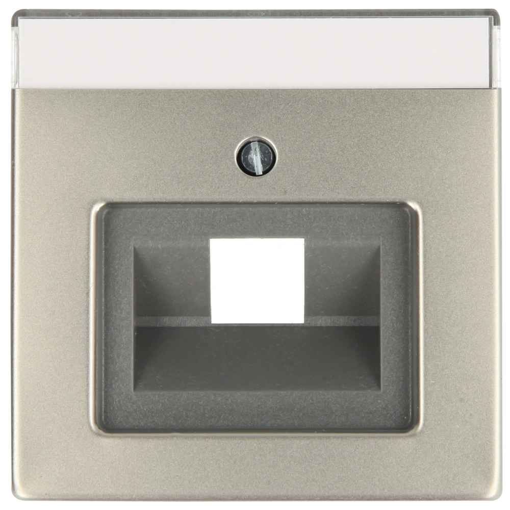 Zentralscheibe mit einem Schrägauslass und Beschriftungsfeld als Abdeckung für Netzwerkdosen zur Unterputz-Installation.