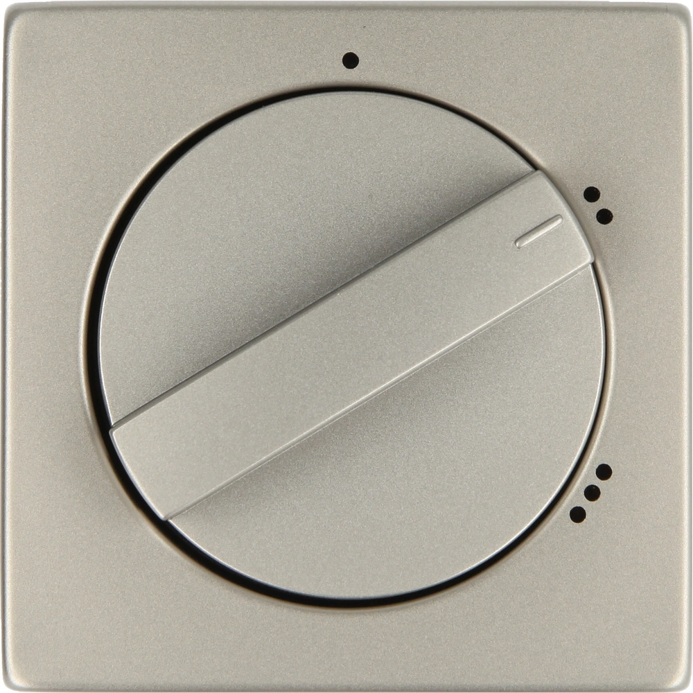 Zentralscheibe mit Aufdruck und Drehgriff ohne Nullstellung als Abdeckung für Dreistufen-Drehschalter zur Unterputz-Installation.