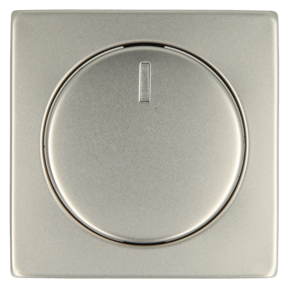 Zentralscheibe mit Vollplatte, Drehknopf und transparentem Leuchtring mit Glimmlampe als Bedienelement für Busch-Dimmer® zur Unterputz-Installation.