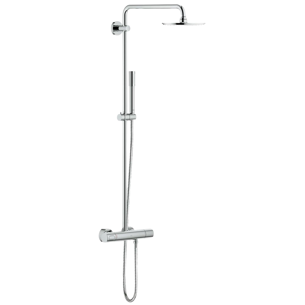 Die GROHE StarLight® Chromoberfläche ist kratzfest und pflegleicht und die Anti-Kalk-Düsen aus Silikon sind leicht zu reinigen. Das Duschsystem ist auch für Durchlauferhitzer ab 18 kW/h geeignet.