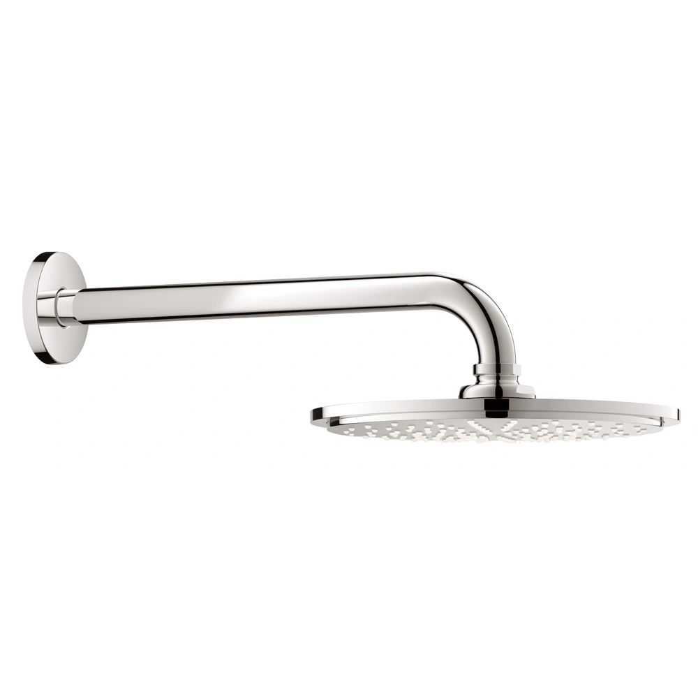 Das GROHE Rainshower Cosmopolitan Kopfbrauseset besteht aus der Kopfbrause Rainshower Cosmopolitan 210 und dem Brausearm Rainshower mit einer Ausladung von 286 mm.