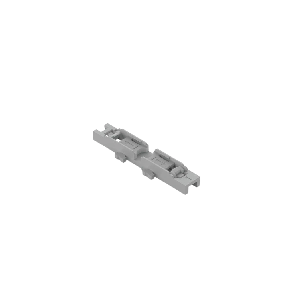 Adapterplatte zur Befestigung von Durchgangsverbindern der Serie 221 auf Hut- oder Tragschienen. Die Durchgangsverbinder werden durch einfaches Einrasten auf der Adapterplatte fixiert.