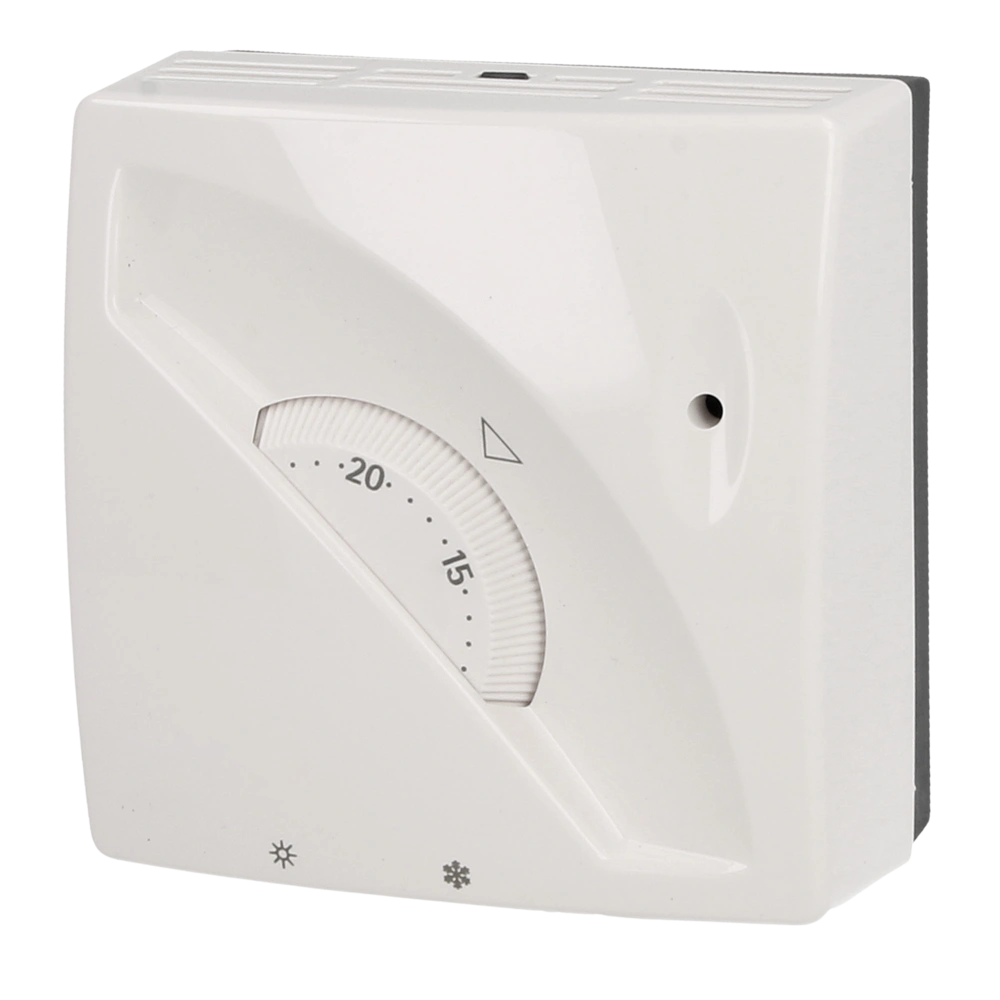 Dieses Thermostat ist ein einfach einzusetzendes, mechanisches Thermostat mit Umschaltkontakt für die Aufputzmontage. Es ist ausgestattet mit einem Winter-Sommer Schalter, entsprechender Heiz- oder Kühlfunktion, sowie Kontrollleuchte...