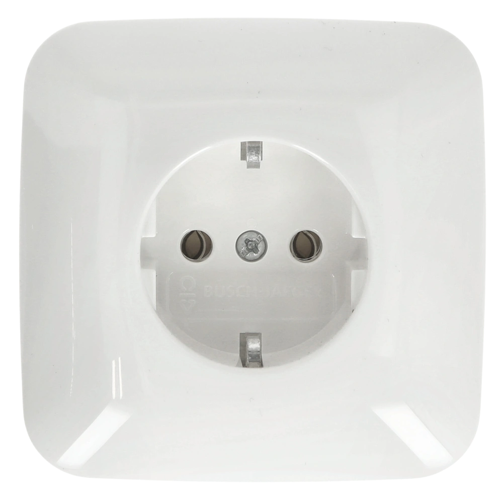 2-polige Schutzkontakt-Steckdose mit Komplettabdeckung und Steckanschluss zur Unterputz-Einzelmontage.