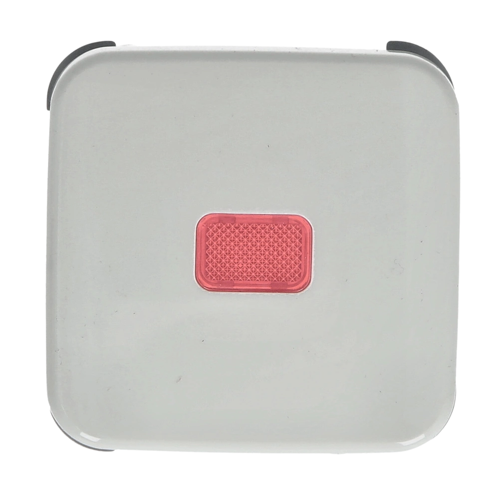 Einzelwippe mit rotem Lichtauslass als Abdeckung für Unterputz-Ausschalter, Wechselschalter, Kreuzschalter, Taster und Kontroll-Wechselschalter.