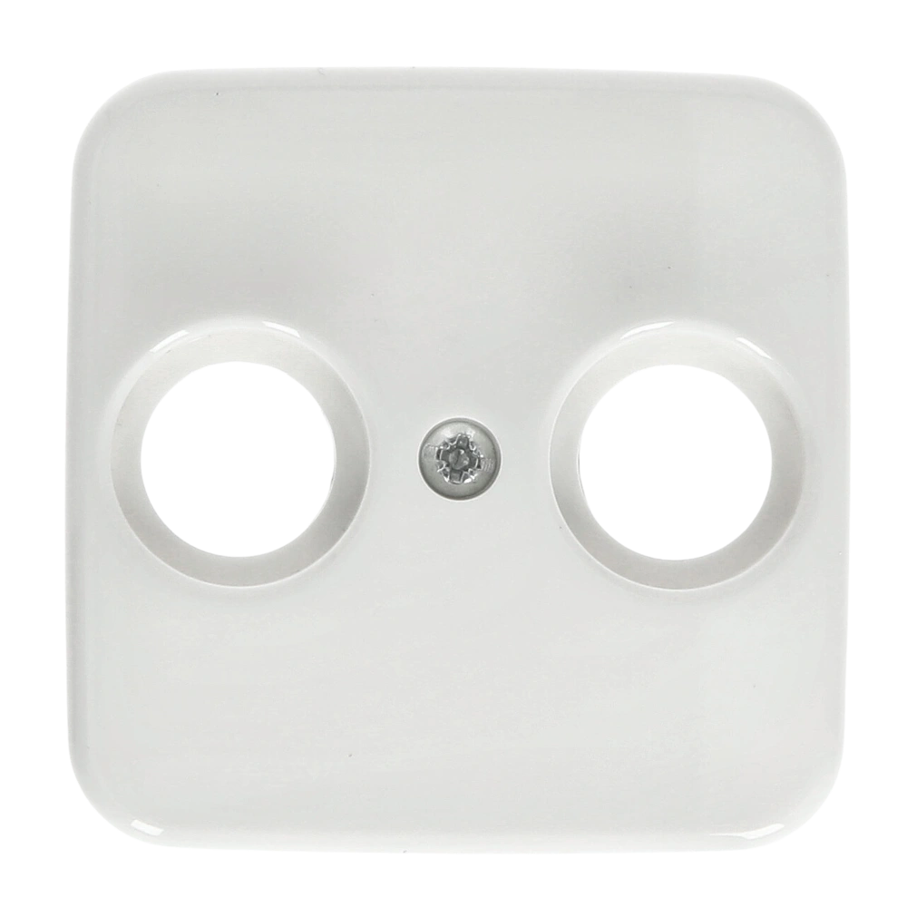 Zentralscheibe mit zwei Anschlüssen und zentraler Befestigung als Abdeckung für Antennensteckdosen TV/SAT zur Unterputz-Installation.