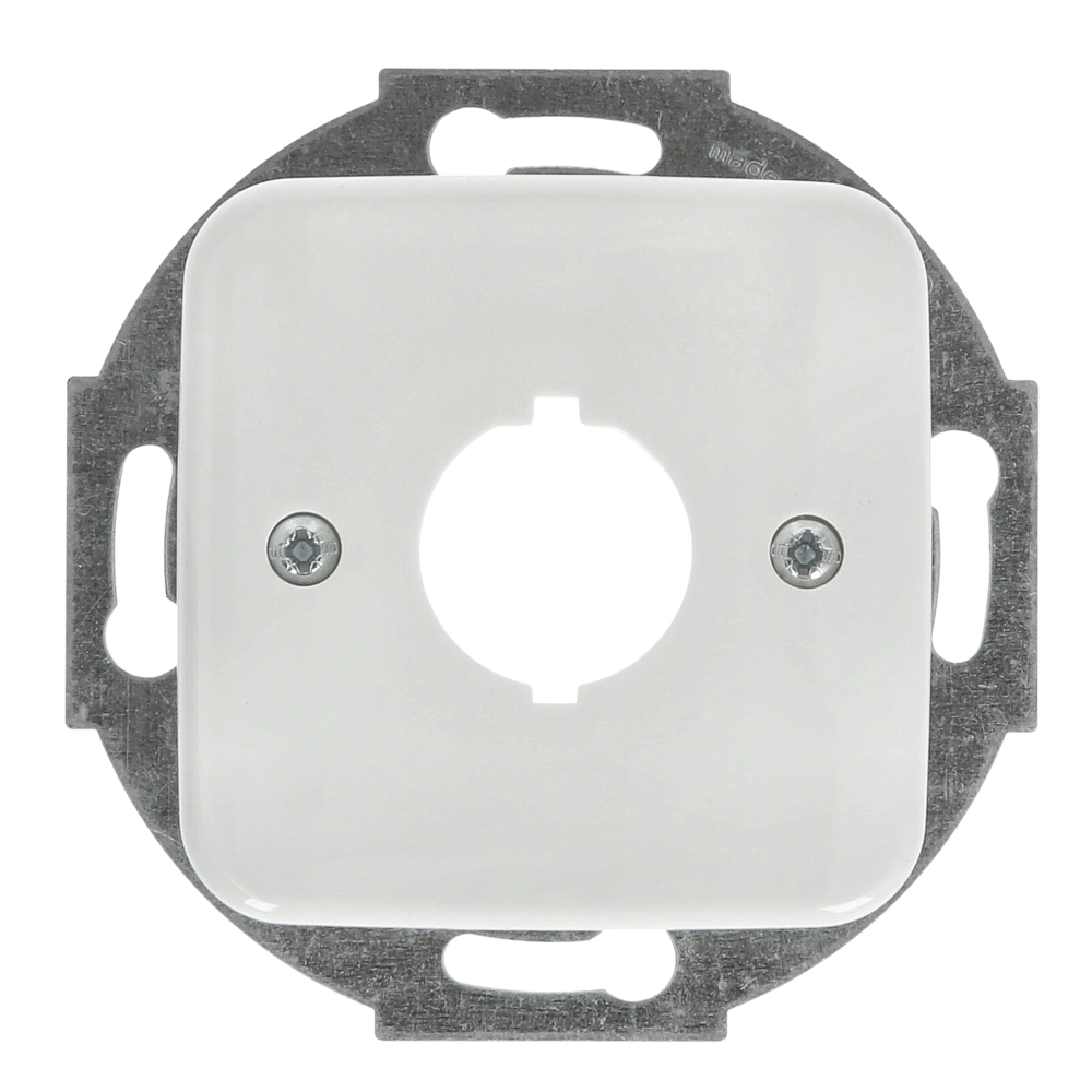 Zentralscheibe mit Tragring und Schraubbefestigung als Abdeckung für Befehlsgeräte mit 19 mm Durchmesser, vor allem für Potenzialausgleichsstecker und Twinax-Steckverbinder.