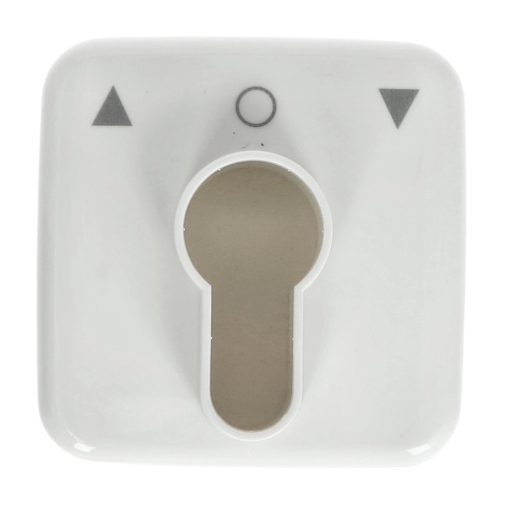 Zentralscheibe mit kleinen Pfeilsymbolen und Aufdruck "O" als Abdeckung für Unterputz-Profilhalbzylinder Tastrastschalter und Taster zur Jalousiesteuerung.