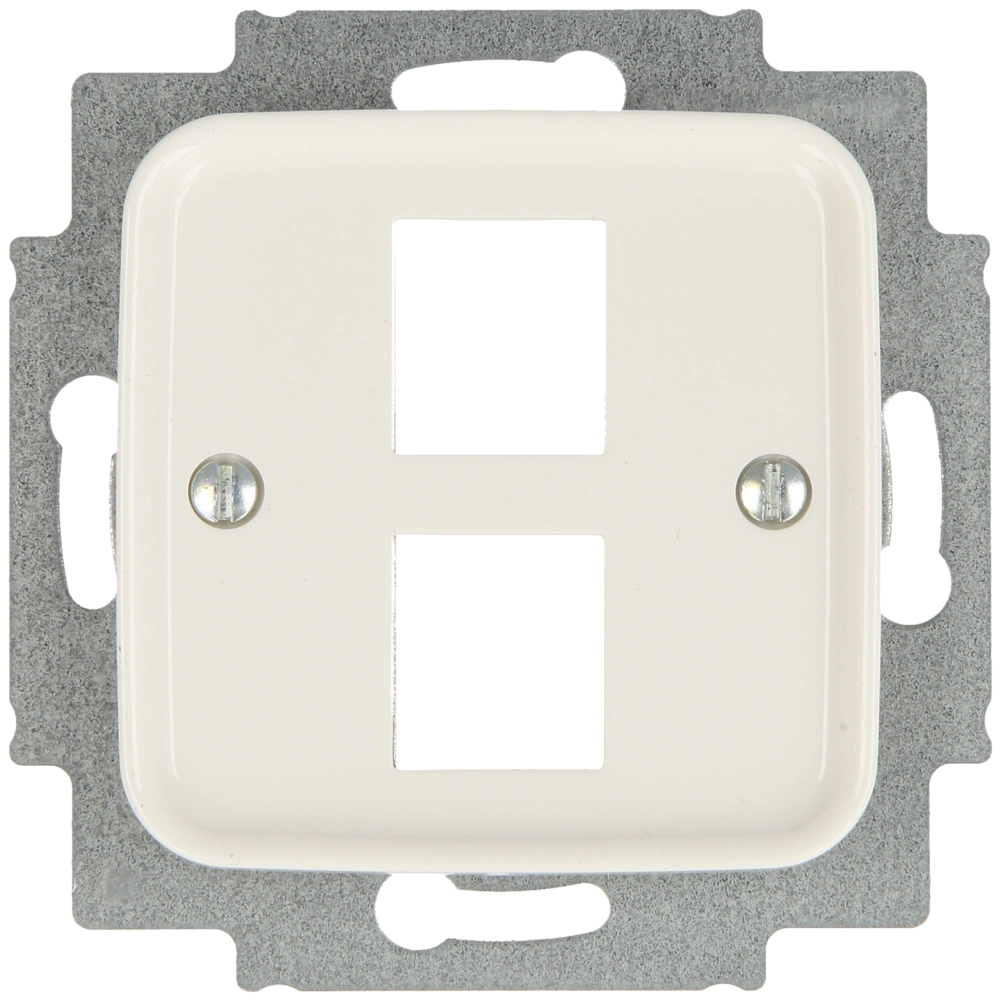 Alle ProduktinformationenZentralscheibe mit Tragring und Schraubbefestigung für zwei Modular-Jack-Einsätze als Abdeckung für Netzwerkdosen zur Unterputz-Installation.