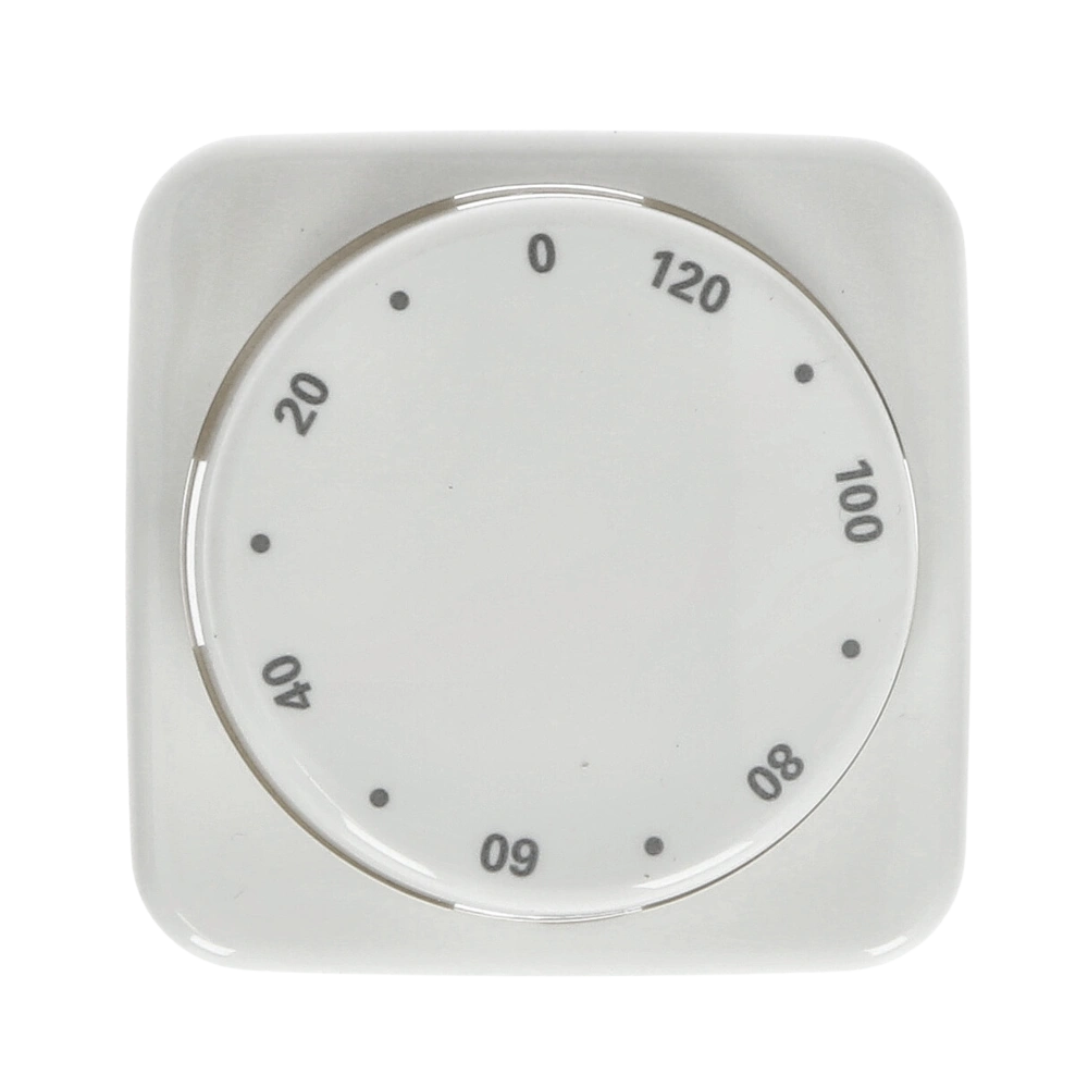 Zentralscheibe mit Drehknopf und Aufdruck als Bedienelement für den Busch-Zeitschaltuhreinsatz mit einer Laufzeit von 120 Minuten.