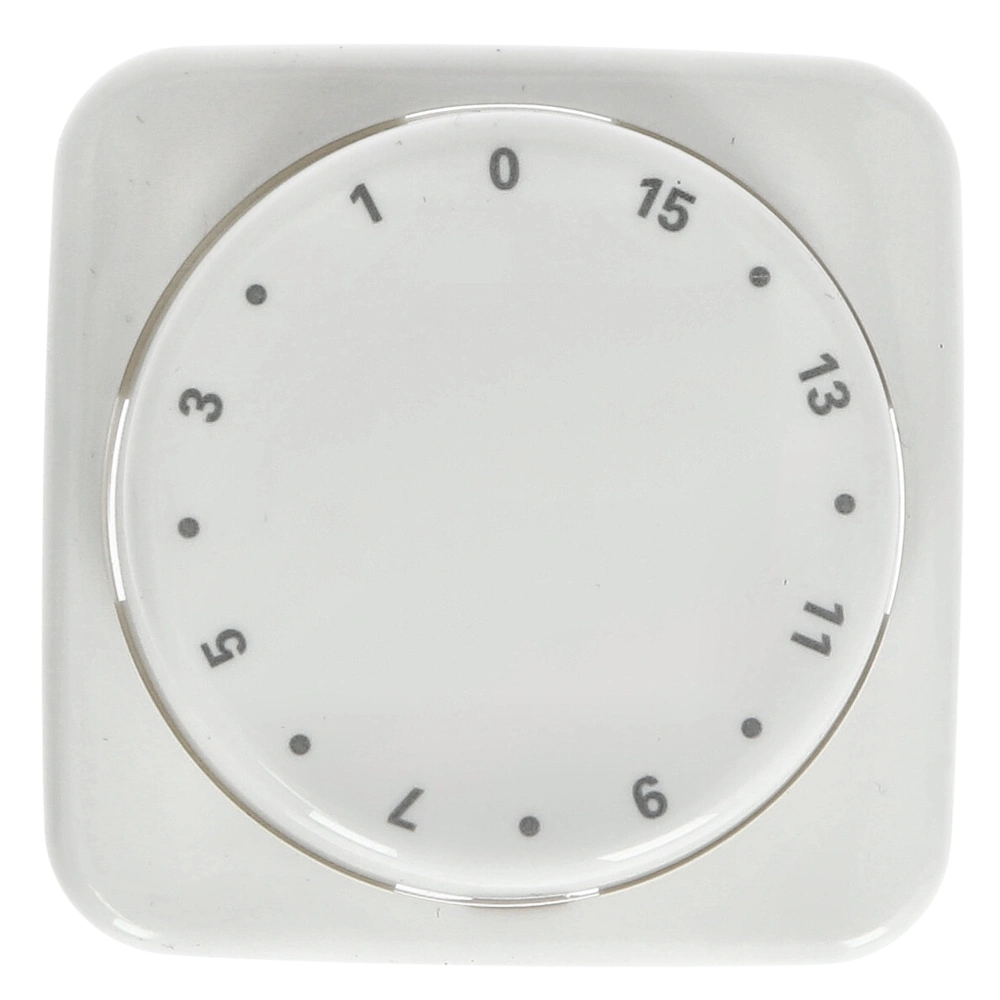 Zentralscheibe mit Drehknopf und Aufdruck als Bedienelement für den Busch-Zeitschaltuhreinsatz mit einer Laufzeit von 15 Minuten.