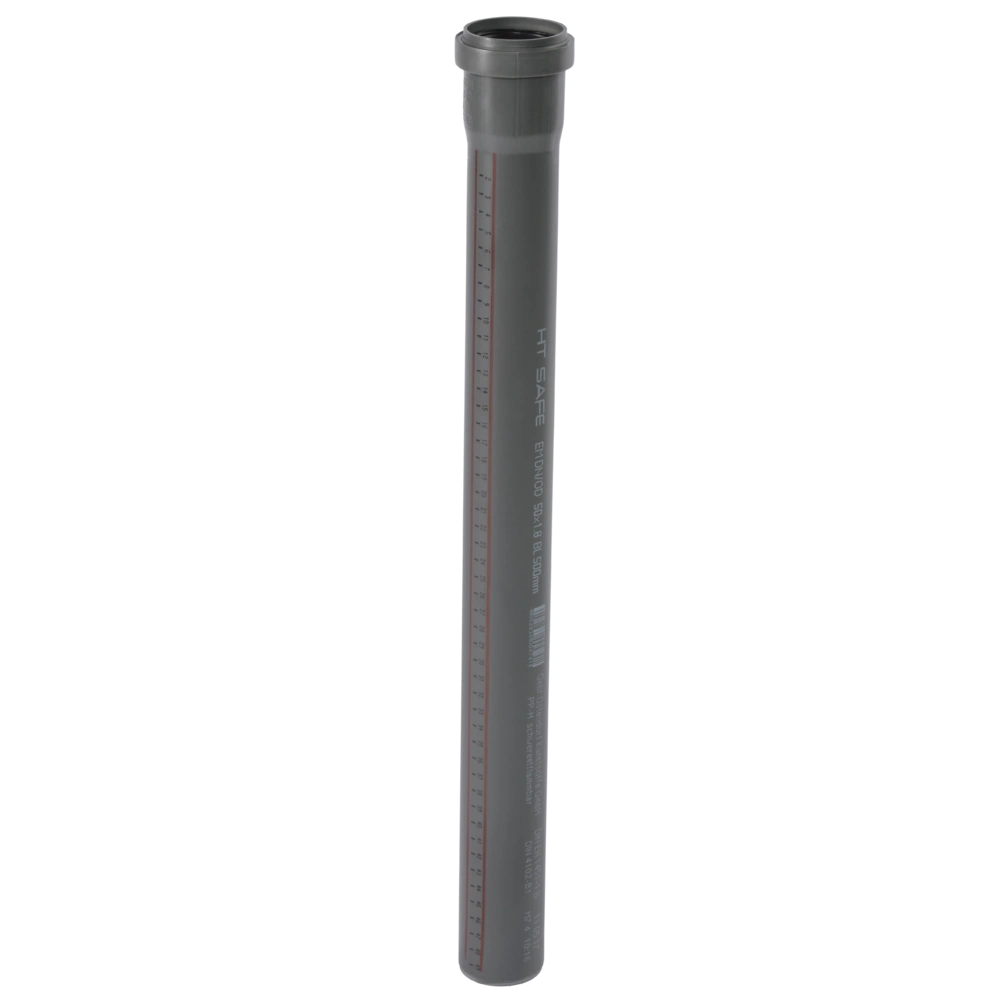 HTsafe-Rohr aus schwer entflammbarem PP-H nach DIN 4102 (B1) mit einseitiger Steckmuffe und 3-fach-Dichtlippe. Eignet für die Abwasserleitung innerhalb von Gebäuden nach DIN EN 1451. Das Rohr ist für heiße, kalte und aggressive Abwässer sowie für Zentralstaubsaugeranlagen geeignet.