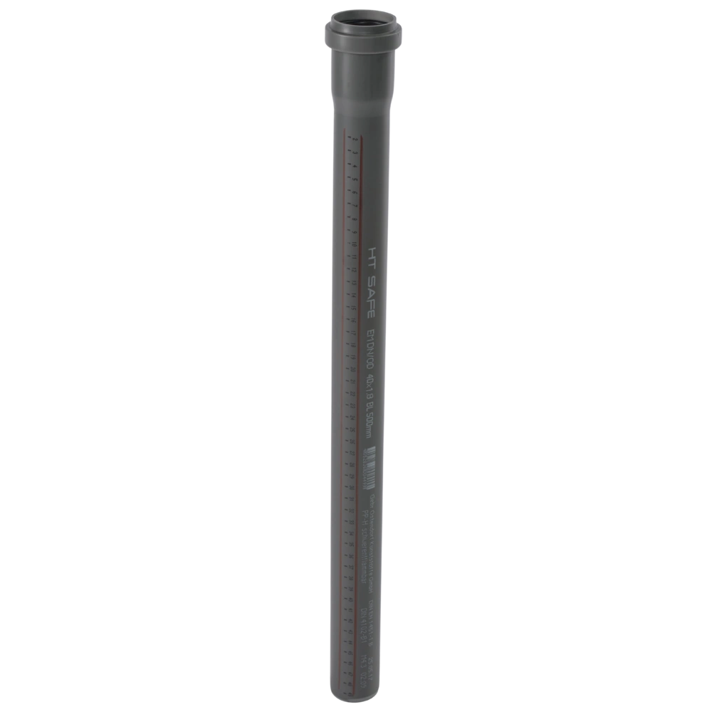 HTsafe-Rohr aus schwer entflammbarem PP-H nach DIN 4102 (B1) mit einseitiger Steckmuffe und 3-fach-Dichtlippe. Eignet für die Abwasserleitung innerhalb von Gebäuden nach DIN EN 1451. Das Rohr ist für heiße, kalte und aggressive Abwässer sowie für Zentralstaubsaugeranlagen geeignet.