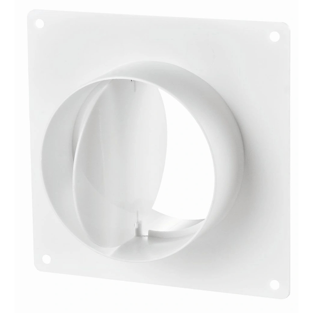 Alle ProduktinformationenRohr-Verbindungselement aus Polystyrol zur Montage von runden Lüftungsrohren. Die Anschlussplatte kann mit Schrauben an der Wand oder Decke befestigt werden. Die Rückstauklappe verhindert das Eindringen von Kaltluft.