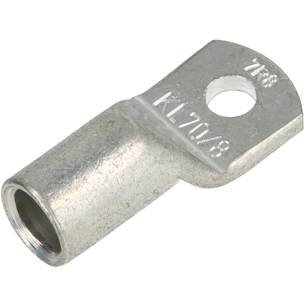 Verzinnter Rohrkabelschuh in Normalausführung mit besten Material- und Verpresseigenschaften für mehrdrähtige Rundleiter und rundgedrückte, mehrdrähtige Sektorleiter.