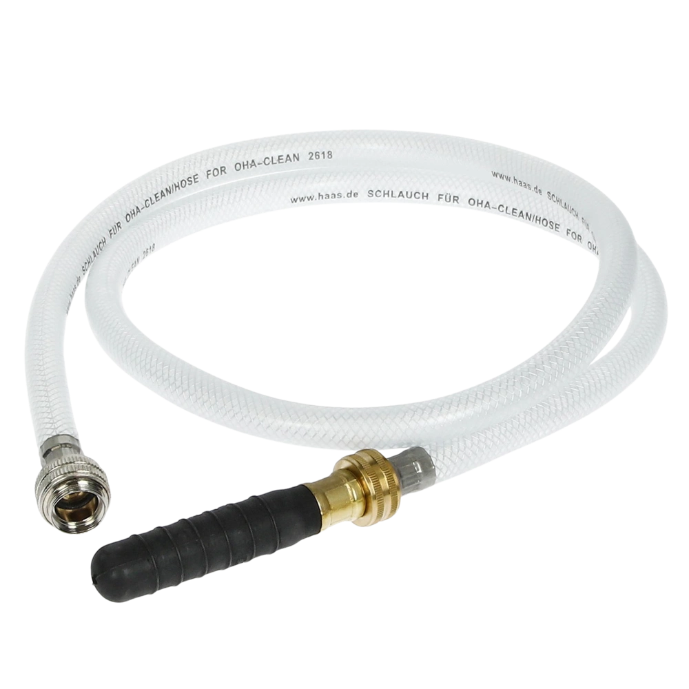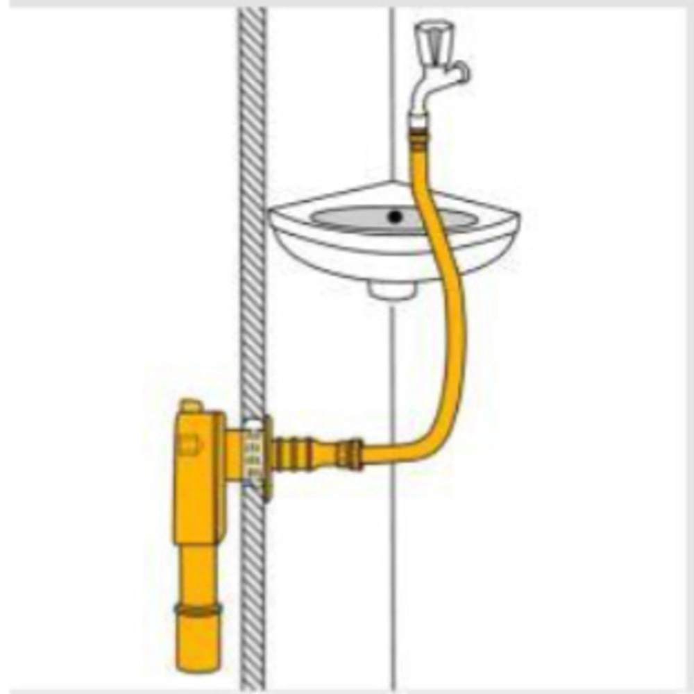 Vorkonfektionierter Schlauchadapter zum Spülen von Waschtischabläufen mit einer vorhandenen Armatur. Für den Übergang auf die Waschtischarmatur stehen drei Gewindegrößen zur Verfügung.