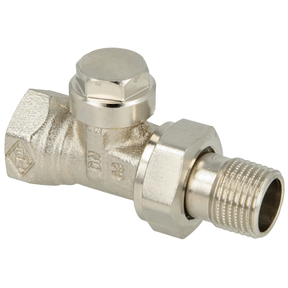 Heizkörper-Rücklaufverschraubung mit reproduzierbarer Voreinstellung und Entleerung. Die Verschraubung kann in Warmwasser-Heizungsanlagen und Klimaanlagen eingesetzt werden. Sie ermöglicht das individuelle Absperren, Entleeren und Füllen von z. B. Heizkörpern ohne eine Betriebsunterbrechung anderer Heizkörper. Der im Absperrkegel integrierte Regulierkegel ermöglicht den hydraulischen Abgleich durch Voreinstellung.