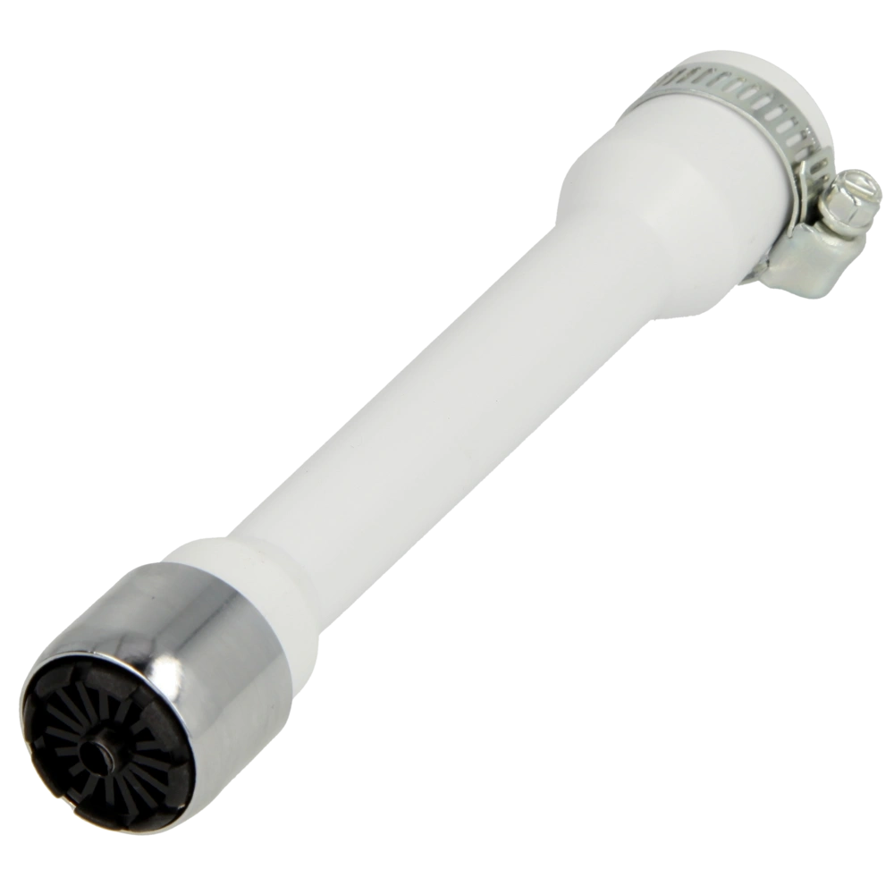 Verlängerter, flexibler Auslauf aus Kunststoff mit Luftsprudler mit Klemme.
