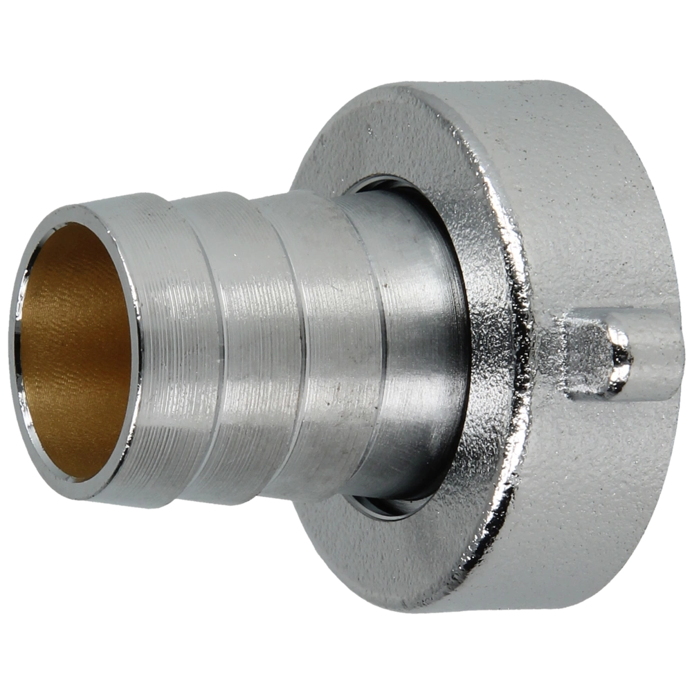 Flach dichtende Schlauchverschraubung aus verchromtem Messing mit NBR-Dichtung.