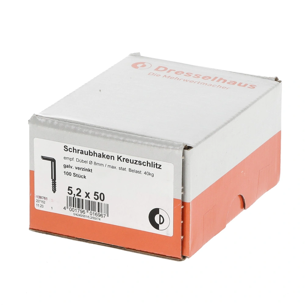 Galvanisch verzinkter Schraubhaken mit Kreuzschlitz.