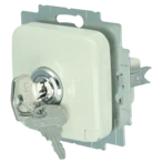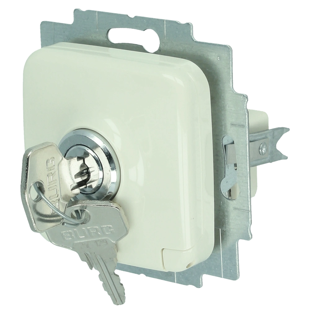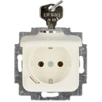 2-poliger Schutzkontakt-Steckdoseneinsatz mit abschließbarem Klappdeckel und Steckanschluss für die Unterputz-Installation.