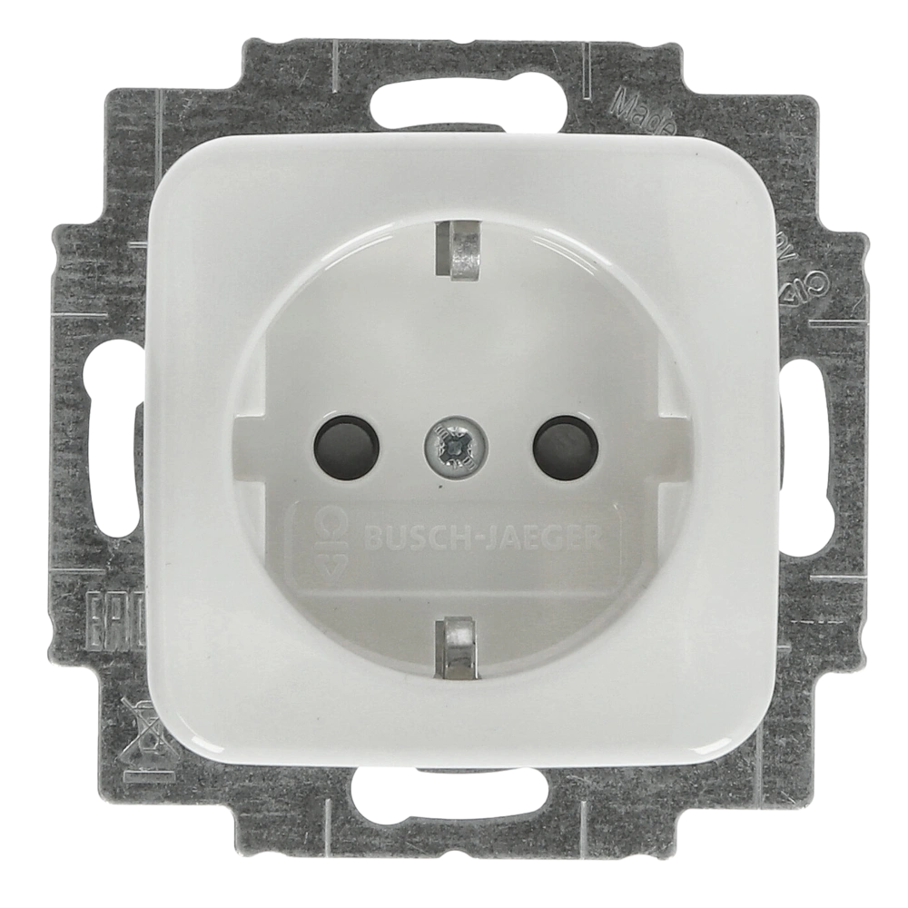 2-poliger Schutzkontakt-Steckdoseneinsatz mit erhöhtem Berührungsschutz und Schraubbefestigung für die Unterputz-Installation.