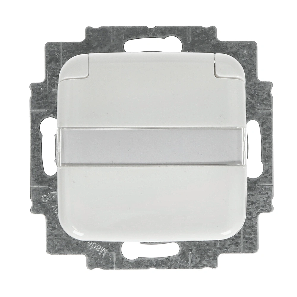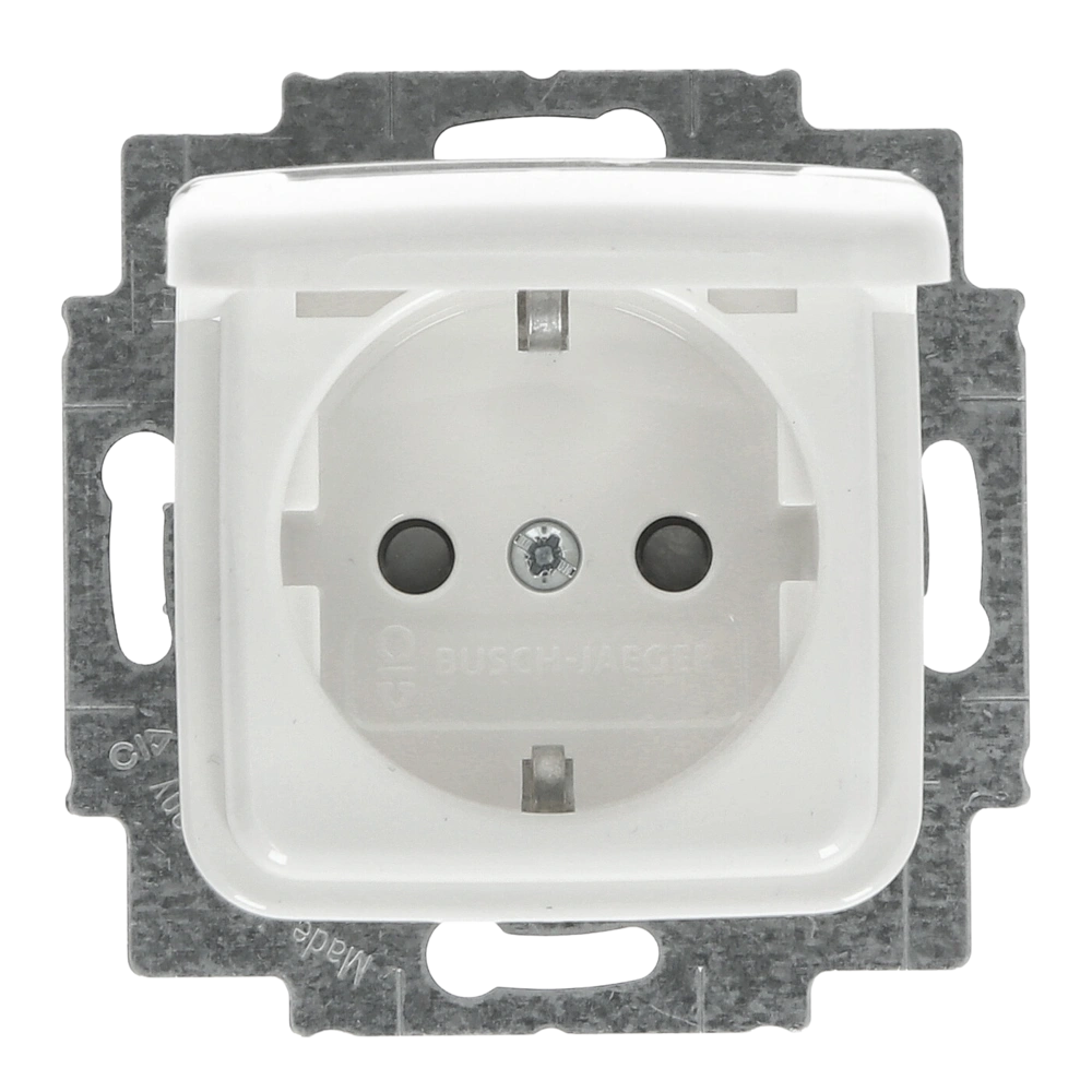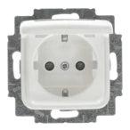 2-poliger Schutzkontakt-Steckdoseneinsatz mit erhöhtem Berührungsschutz und arretierbarem Klappdeckel mit Beschriftungsfeld für die Unterputz-Installation.