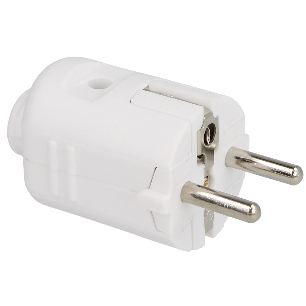 Der Schutzkontakt-Montagestecker mit Zugentlastung besteht aus Kunststoff. Er verfügt über ein doppeltes Schutzkontaktsystem.